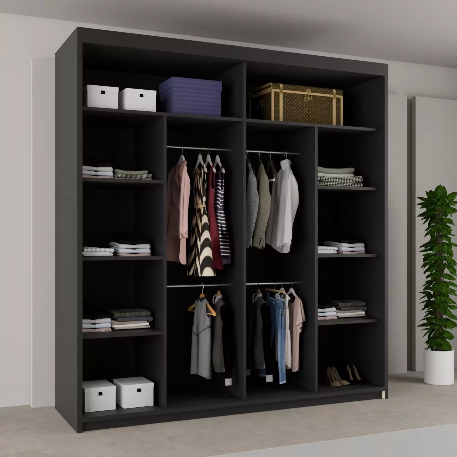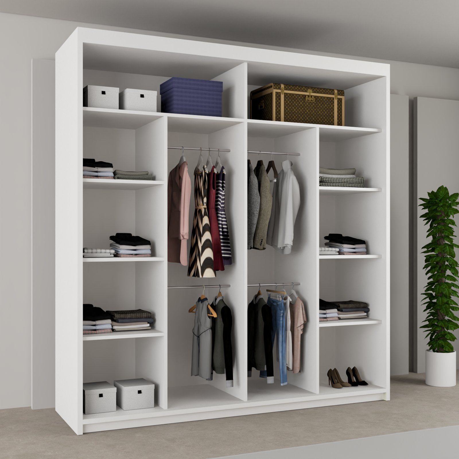 | Model | Sliding Doors | Width | Height | Depth | Shelves | Hanging Rails |